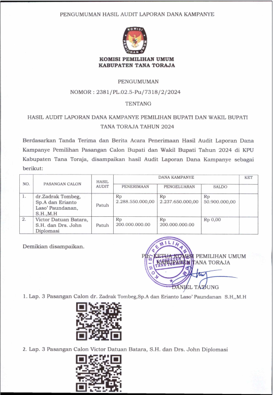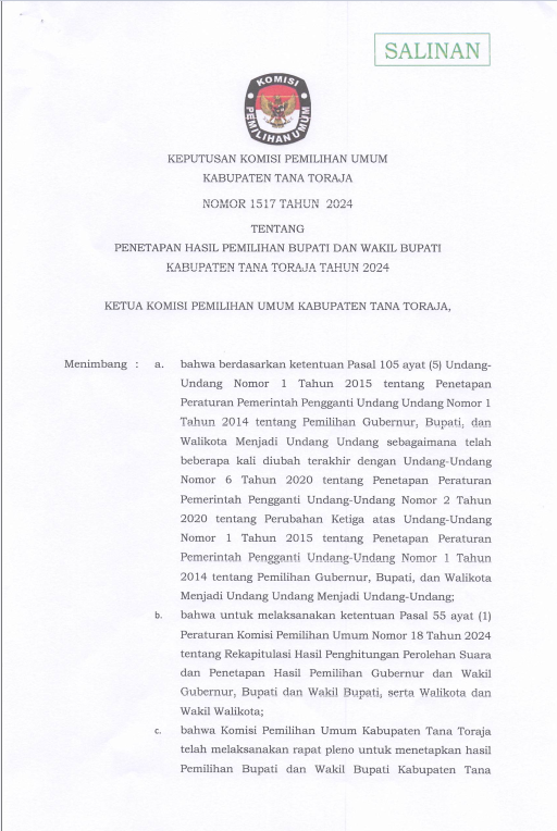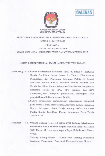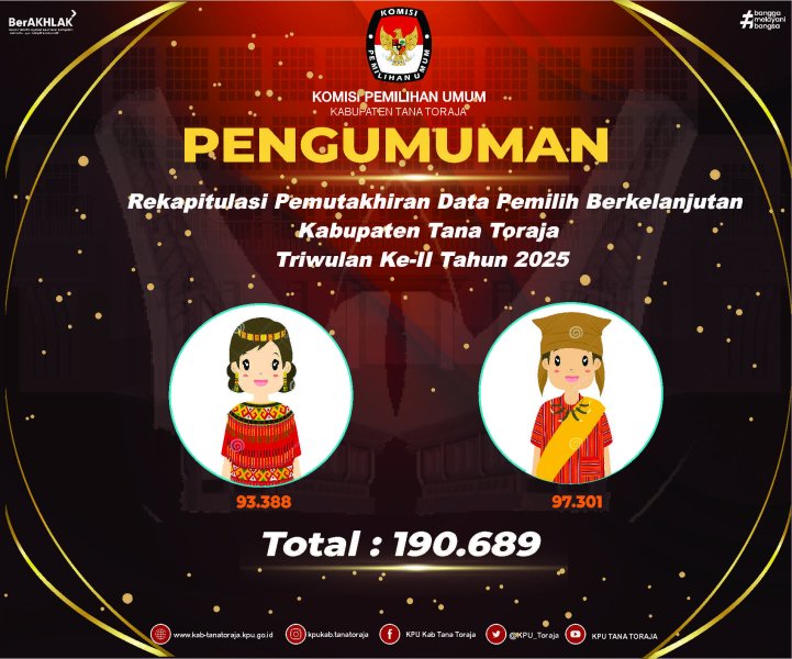 Keputusan Komisi Pemilihan Umum Kabupaten Tana Toraja Nomor 46 Tahun 2025 tentang Penetapan Rekapitulasi Pemutakhiran Daftar Pemilih Berkelanjutan (PDPB) tingkat Kabupaten Tana Toraja Triwulan III Tahun 2025.