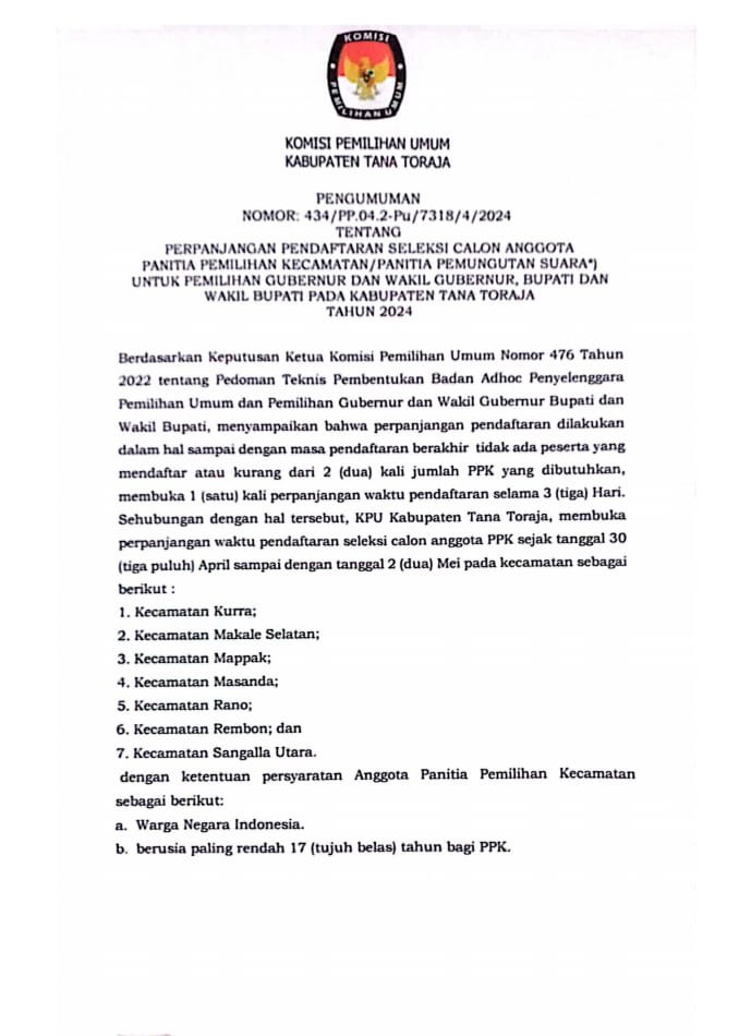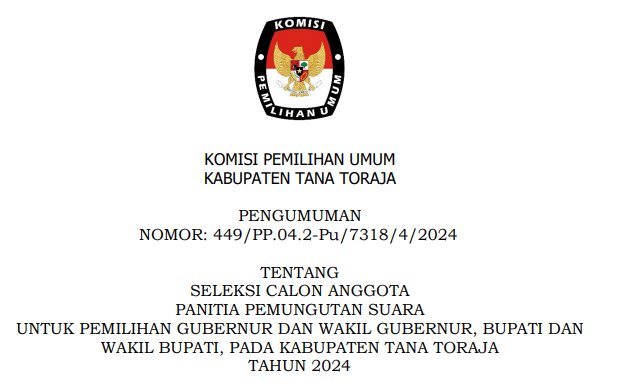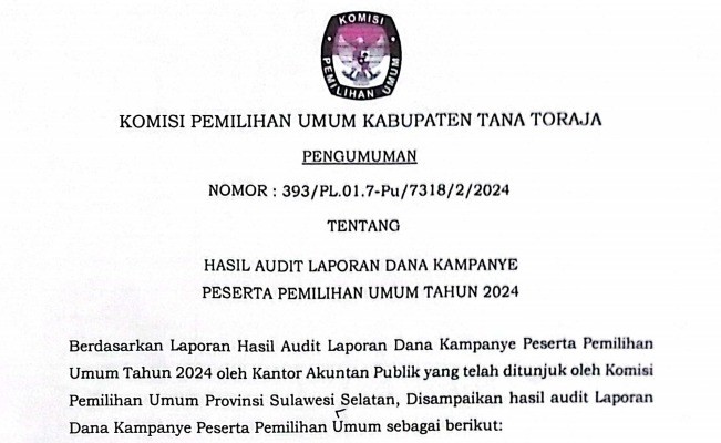 SK Penetapan Calon Terpilih Anggota DPRD Kab. Tana Toraja