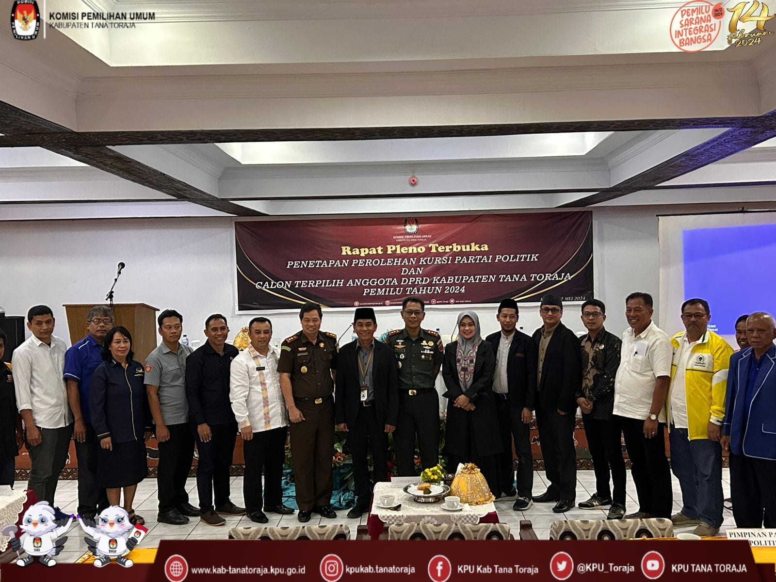 Komisi Pemilihan Umum (KPU) Kabupaten Tana Toraja resmi menetapkan perolehan kursi partai politik dan calon terpilih anggota Dewan Perwakilan Rakyat Daerah (DPRD) Kabupaten Tana Toraja pada pemilihan Umum Tahun 2024.