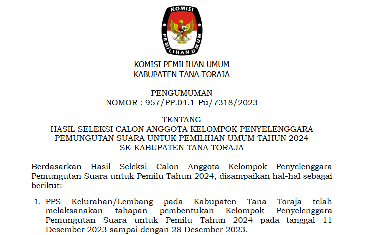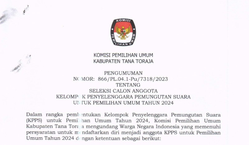 #TemanPemilih, Komisi Pemilihan Umum Kabupaten Tana Toraja menggelar kegiatan Sosialisasi Penyusunan & Pengurusan Daftar Pemilih Tambahan (DPTb) pada hari Jumat 15 Desember 2023 Pukul 09.30 Wita - selesai, bertempat di Villa Manggasa Kabupaten Tana Toraja dan dihadiri para pimpinan dari beberapa instansi pemerintahan,instansi vertikal & instansi swasta yang sebagian besar pegawai/karyawan nya terdaftar sebagai pemilih diluar daerah Tana Toraja.