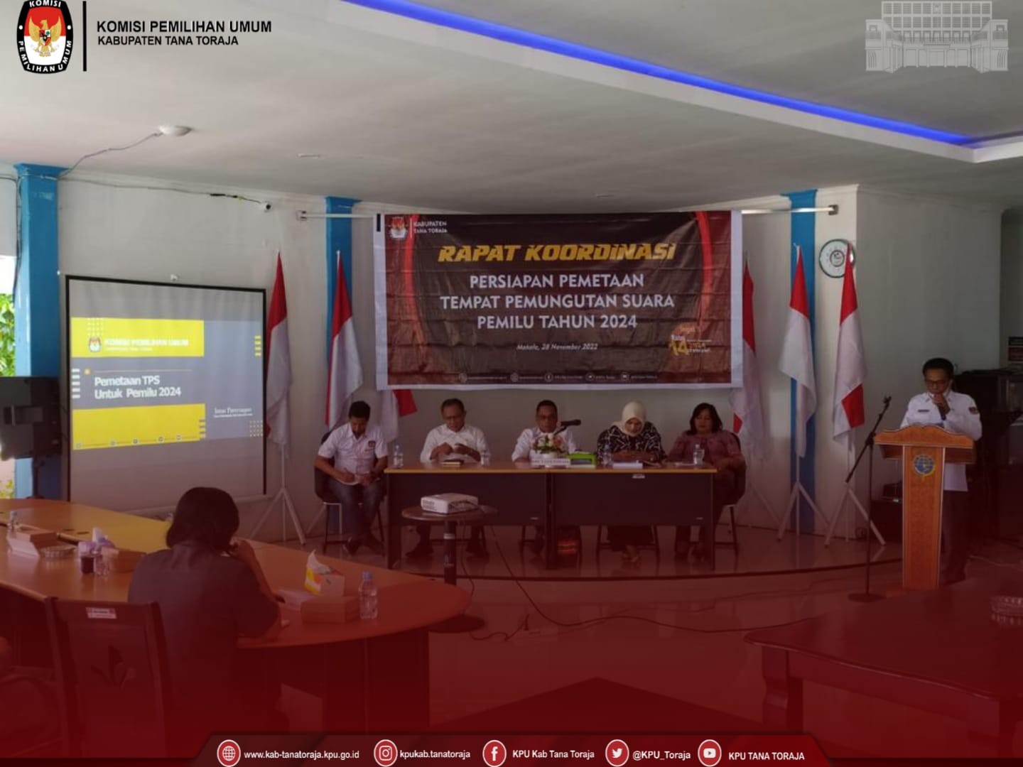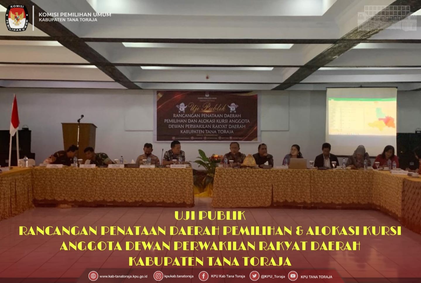 KPU Tana Toraja - Kamis, 15 Desember 2022 Komisi Pemilihan Umum Kabupaten Tana Toraja menggelar Rapat Koordinasi Uji Publik Rancangan Penataan Daerah Pemilihan dan Alokasi Kursi Anggota Dewan Perwakilan Rakyat Daerah Kabupaten Tana Toraja di aula Pantan Toraja Hotel.