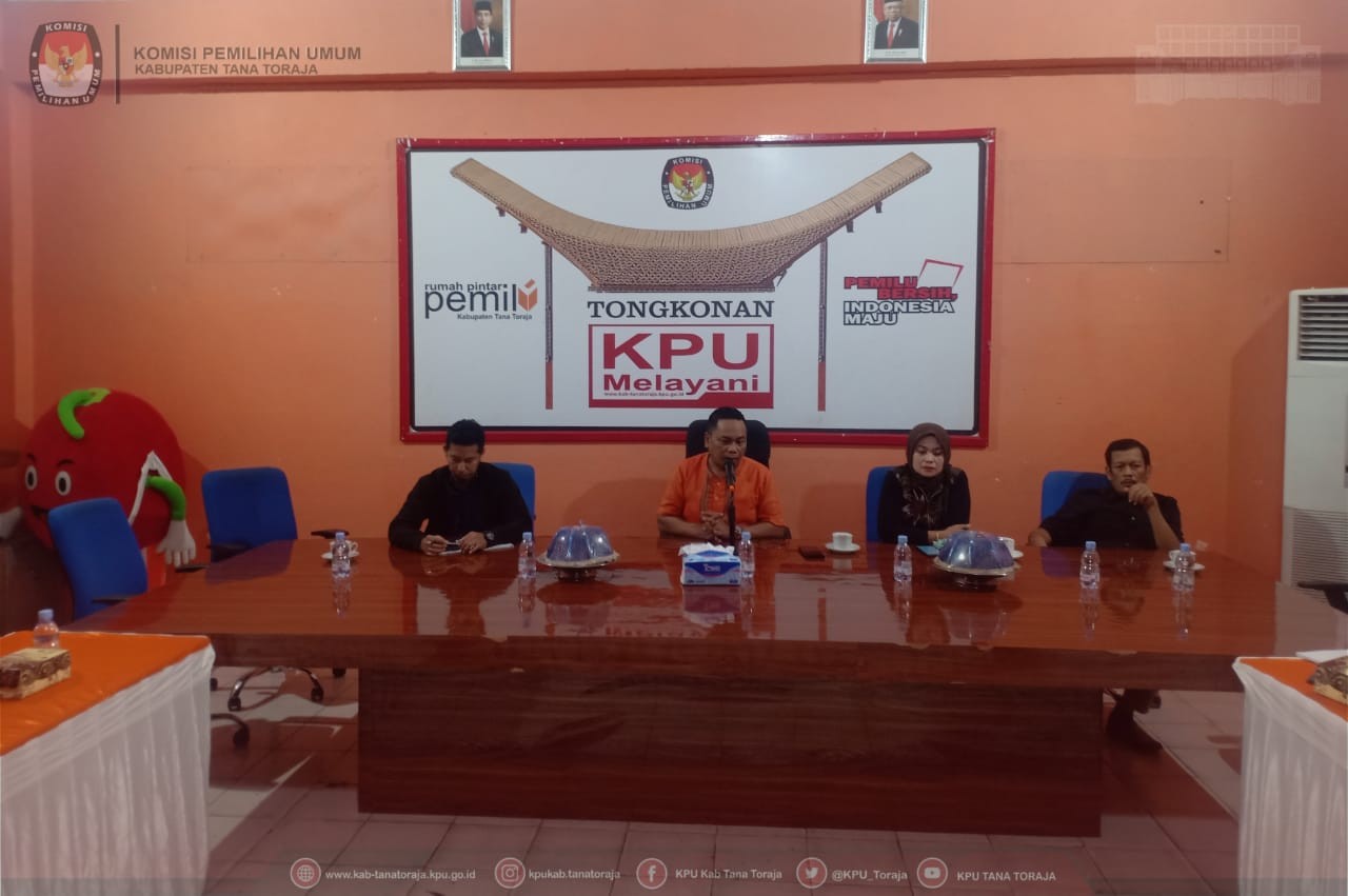 Rabu, 13 Juli 2022 Komisi Pemilihan Umum Kabupaten Tana Toraja melakukan audiensi dengan Pemuda Katolik tepat pada pukul 11.00 Wita di Aula Kantor KPU Kabupaten Tana Toraja. Audiensi tersebut bertujuan untuk membangun komunikasi antara Komisariat Pemuda Katolik dan KPU untuk ikut berpartisipasi mengambil bagian pada perhelatan politik Pemilu 2024, serta sebagai bagian dari kontrol publik pada Pemilu 2024 mendatang. Pemuda Katolik juga mengatakan " hadir karena punya tanggung jawab moral sebagai Ormas yang diakui Negara untuk mengawal Pemilu 2024. Harapannya Pemuda Katolik bisa mengambil peran sebagai penyelenggaran (Adhoc) serta perekrutan kedepan keterwakilan perempuan >30% penyelenggara Pemilu. Dilanjutkan dengan Audiensi dengan KNPI Tana Toraja pukul 13.00 wita, mengatakan bahwa KNPI punya harapan untuk bersinergi dengan KPU sebagai penyelenggara Pemilu serta merealisasikan peran pemuda dalam menghadapi Pemilu 2024 terutama money politik dan melawan hoax yang berkembang dikalangan generasi muda. Dalam audiesni tersebut juga dibahas Data Pemilih terkait politik identitas dan oligarki Pemilih milenial lebih cenderung ke digitalisasis. Tak hanya itu KNPI mengatakan bahwa akan melakukan Koordinasi dengan semua pihak yang berhubungan dengan Data Pemilih untuk mendukung proses Pemutakhiran Data Pemilih. akhir kata Ketua KPU Kabupaten Tana Toraja mengatakaan akan melakukan MOU bersama pengurus KNPI Tana Toraja perihal Pemilu Serentak Tahun 2024.