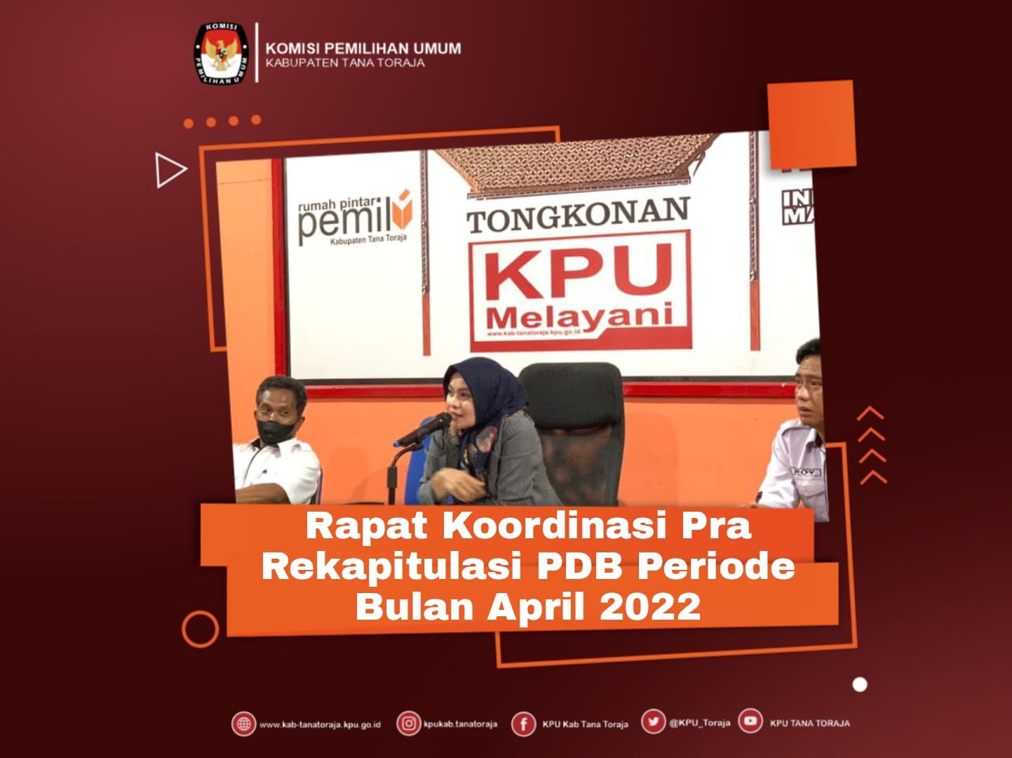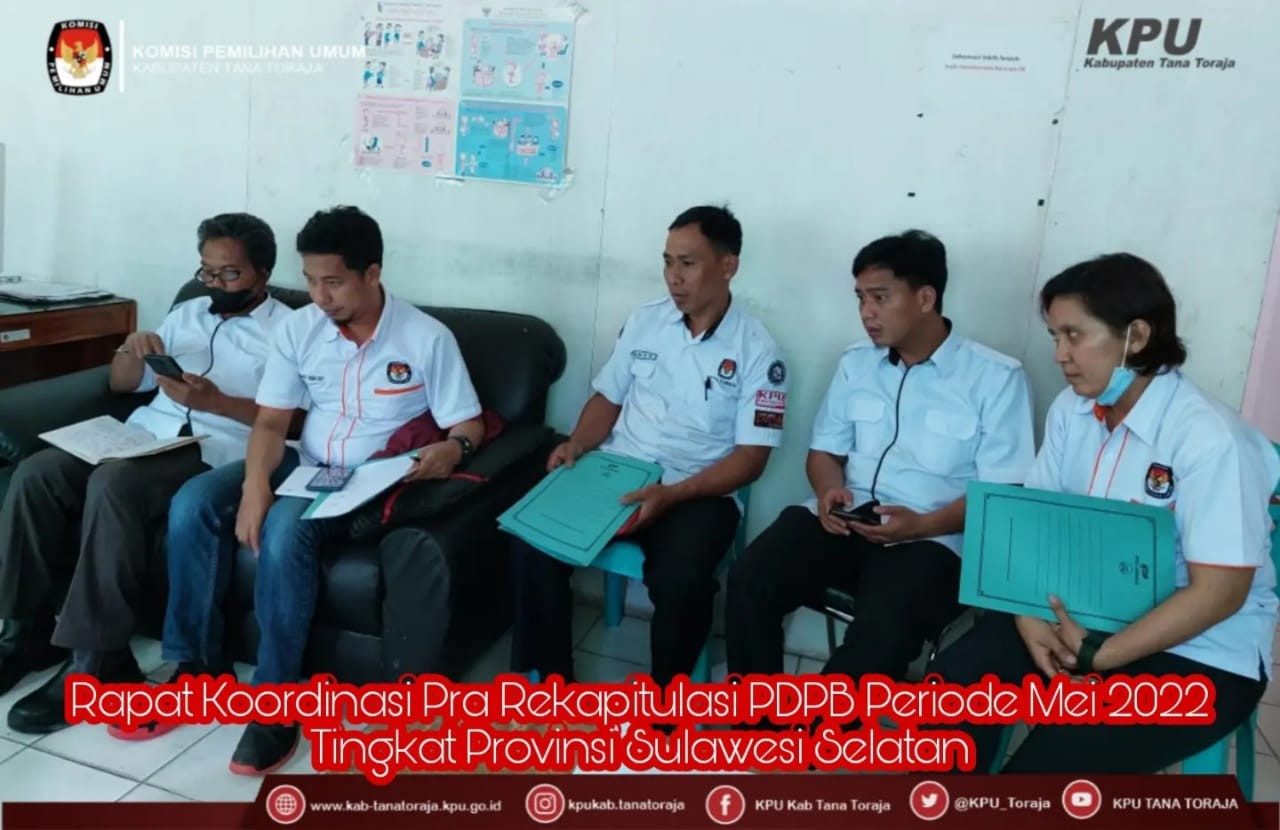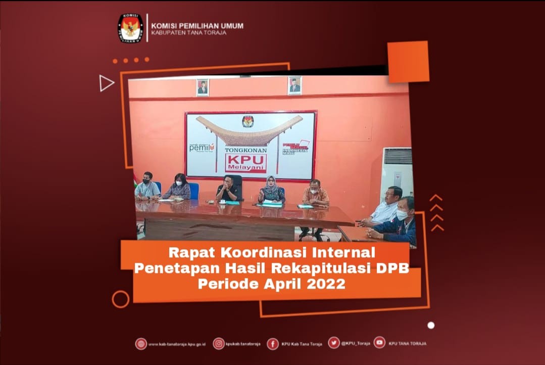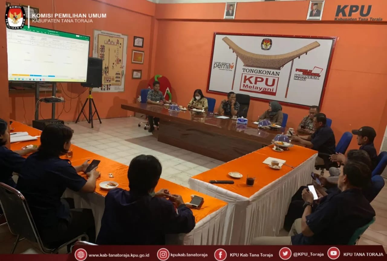KPU Tana Toraja- Selasa, 31 Mei 2022 bertempat di aula RPP KPU Kabupaten Tana Toraja dilaksanakan rapat Pleno penetapan Hasil Rekapitulasi Daftar Pemilih Berkelanjutan (DPB) Periode Mei 2022 yang dihadiri oleh Ketua & Anggota KPU Kabupaten Tana Toraja, Sekretaris, para Kasubag dan staf Sekretariat KPU Tana Toraja., dalam rapat tersebut dibahas bahwa sepanjang bulan mei ditemukan setidaknya 41 orang di Kaupaten Tana Toraja yang meninggal dunia, hal tersebut berpengaruh pada Daftar Pemilih Berkelanjutan (DPB).